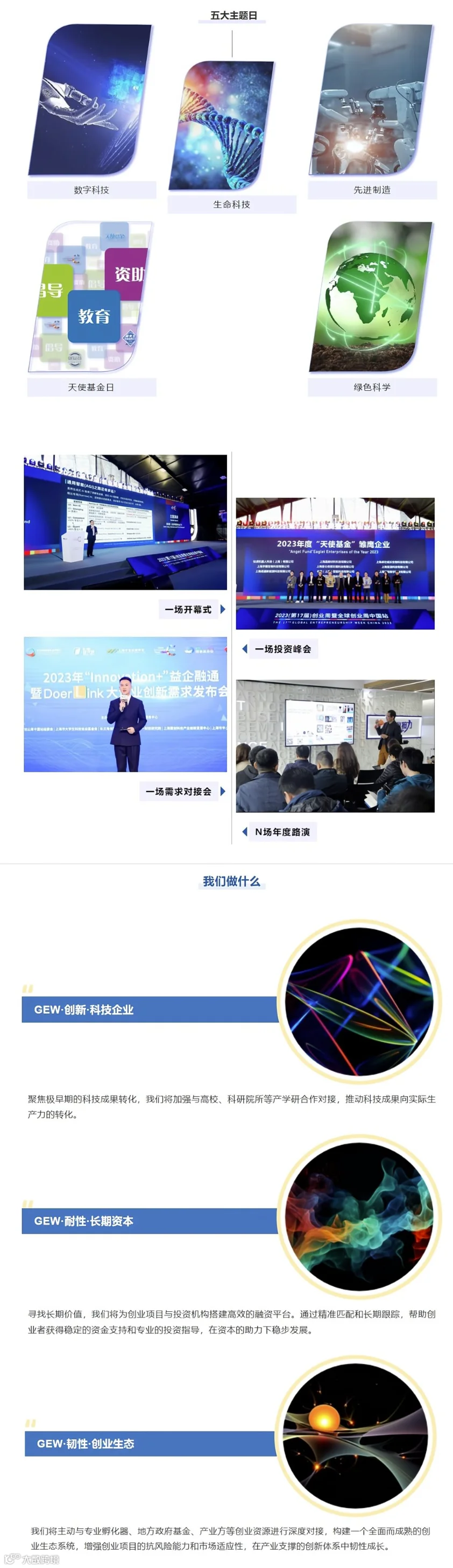 2023年GEW中国站活动持续六天,除了推出“十年逐梦,从心出发,创业我们在‘17’”专题展览外,活动还汇聚了众多科技界领军人物,举办了主题活动和观点分享会,加强了投融资对接的成效,并设置了GEW漫步打卡线路,为观众带来了创新的互动体验。