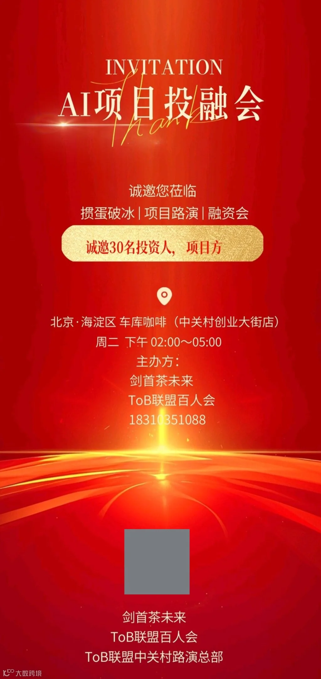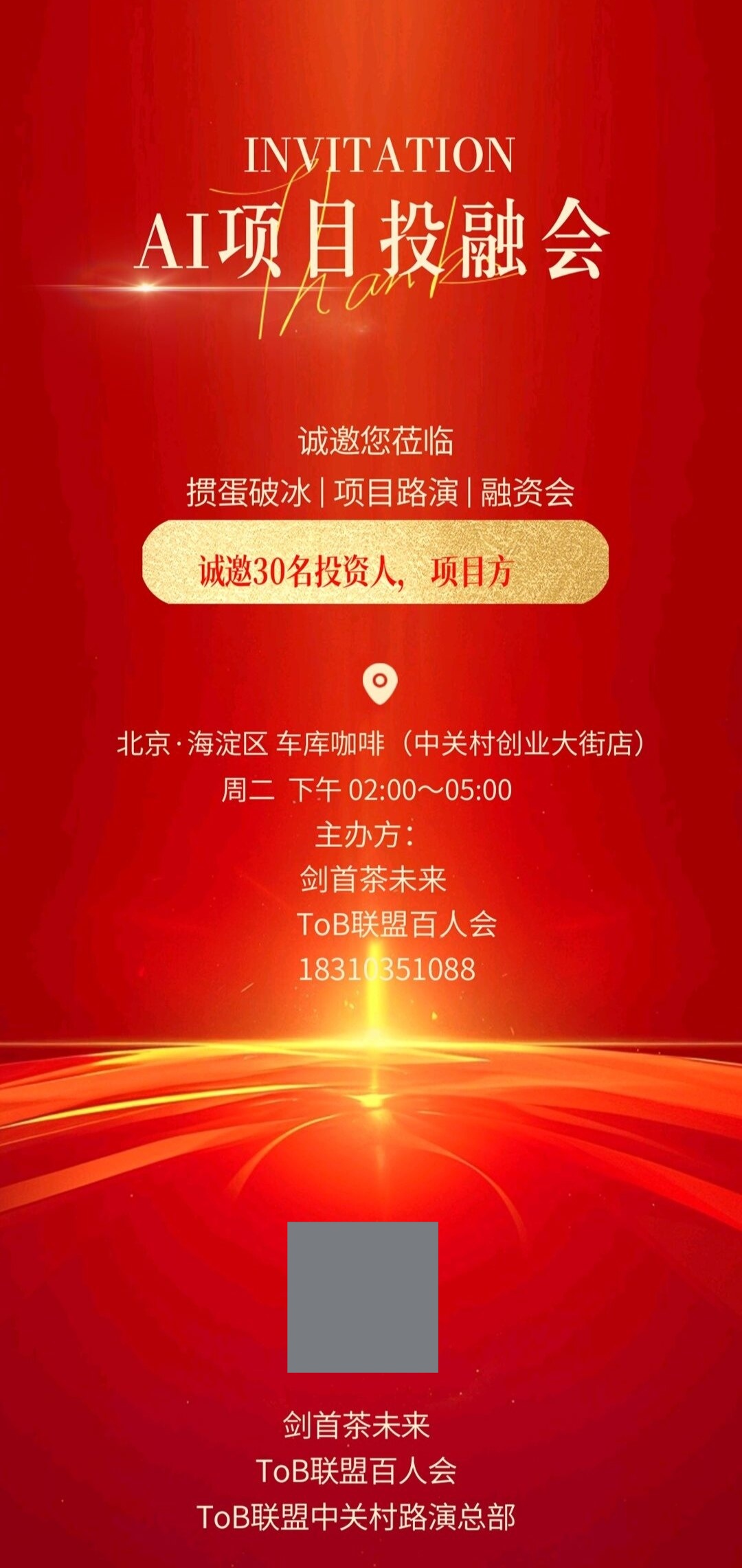 由剑首茶未来和ToB联盟联合发起举办,旨在依托双方资源优势,为AI创业者搭建一个和投资人现场面对面交流对接平台,促进更多商业机会精准对接和落地。