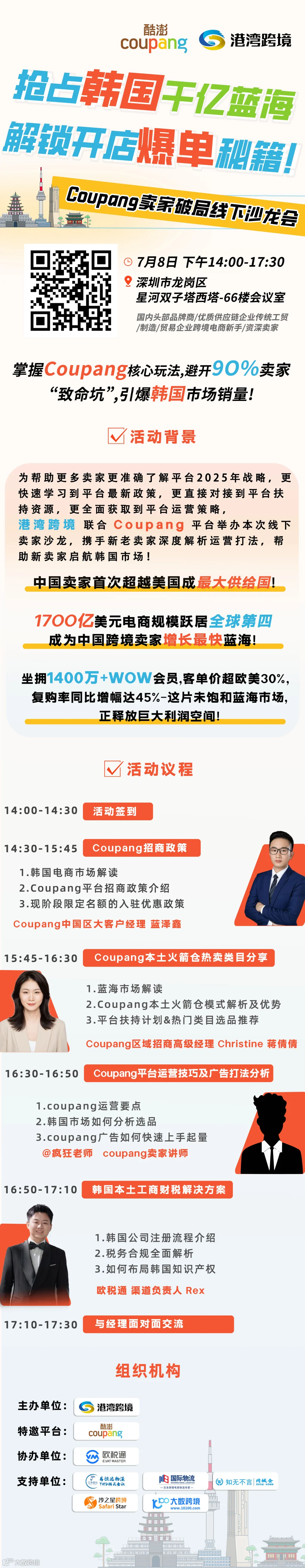 抢占韩国千亿蓝海 解锁开店爆单秘籍——Coupang卖家破局线下沙龙会