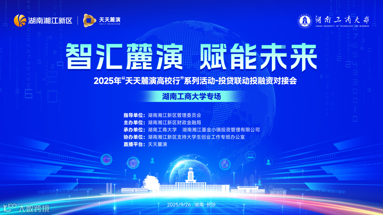 为认真落实支持省大学生创业“七个一”部署要求,根据《湖南湘江新区支持大学生创业专项行动方案》文件精神以及“实施创业金融赋能专项行动”工作要求,为湘江新区大学生全方位提供创新创业引导、创业政策扶持、创业担保贷款、创业孵化服务、创业配套支持,2025年“天天麓演高校行”系列活动走进湖南工商大学即将于9月26日举办,本次活动以“智汇麓演,赋能未来”为主题,旨在通过金融讲堂、投贷联动投融资对接会等形式,推动科技成果转化,助力学生创新创业,为新区高质量发展注入青春动能。现诚邀相关高校创新创业师生、投资机构代表、相关从业者参加对接。