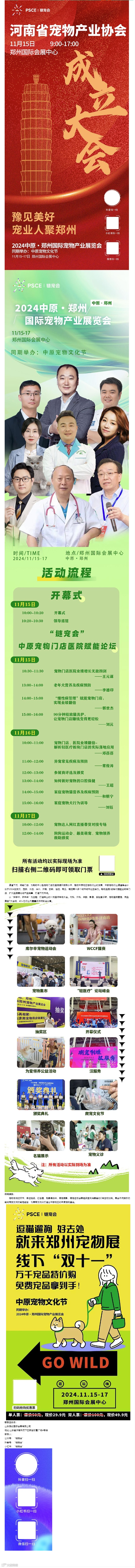 中部宠物渠道商大会、河南省宠物产业协会成立大会、宠物网红达人选品大会、中部宠物人才大会、CKU全犬种繁育大赛/美容大会、WCCF中部繁育大赛、中国猫咪秀、全国狗狗运动会......