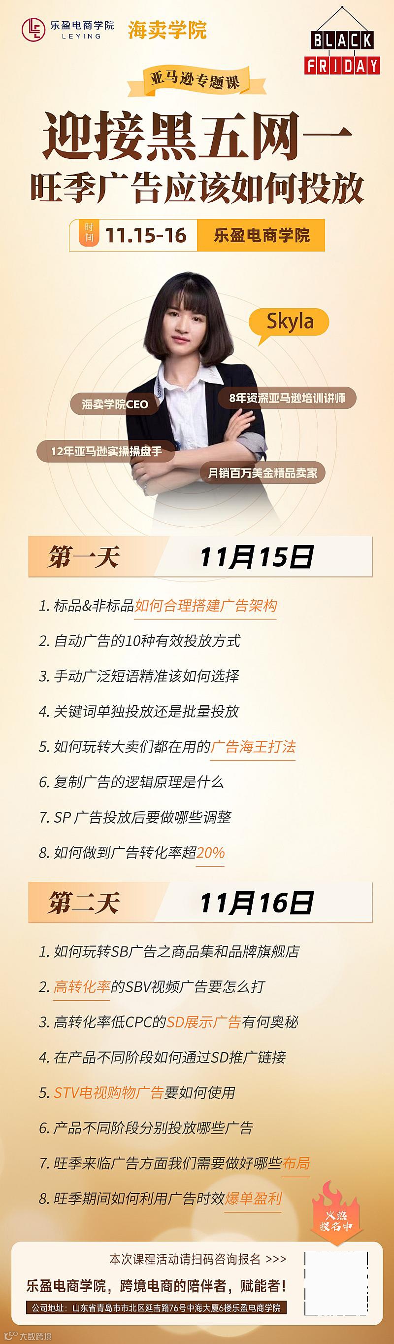 海卖学院Skyla带来旺季营销实操课,一起冲刺黑五网一!
