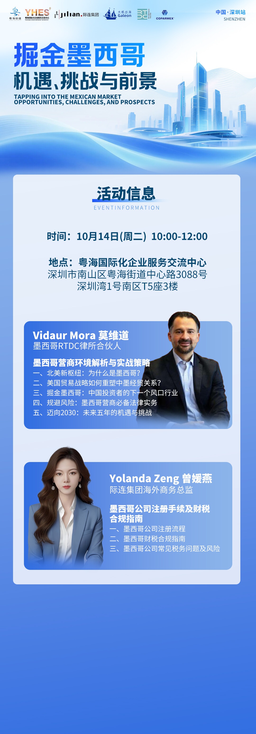 在此背景下,本次“掘金墨西哥:机遇、挑战与前景”专题沙龙应运而生。活动旨在汇聚中墨两国的资深专家与行业实践者,通过深度解析2025-2030年墨西哥营商环境,分享一线实战策略,为中国企业提供一场关于墨西哥投资的“全景式”洞察与“落地式”指导,助力企业把握时代先机,实现稳健、成功的出海布局。