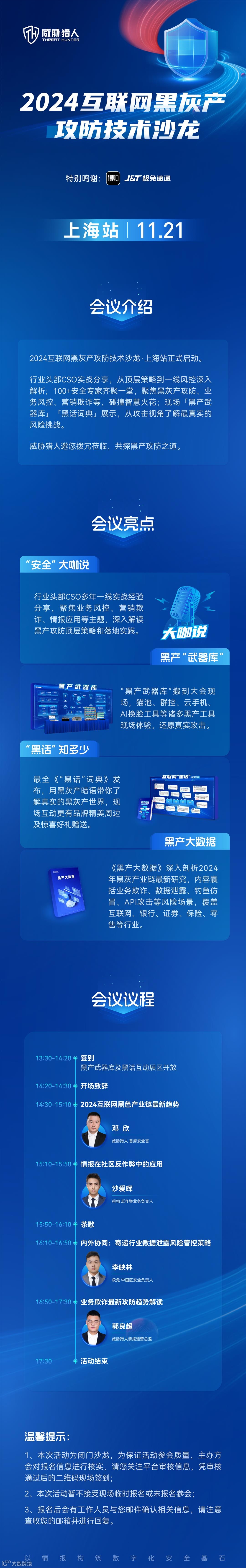 2024威胁猎人互联网黑灰产攻防技术沙龙 上海站(11.21/周四 )