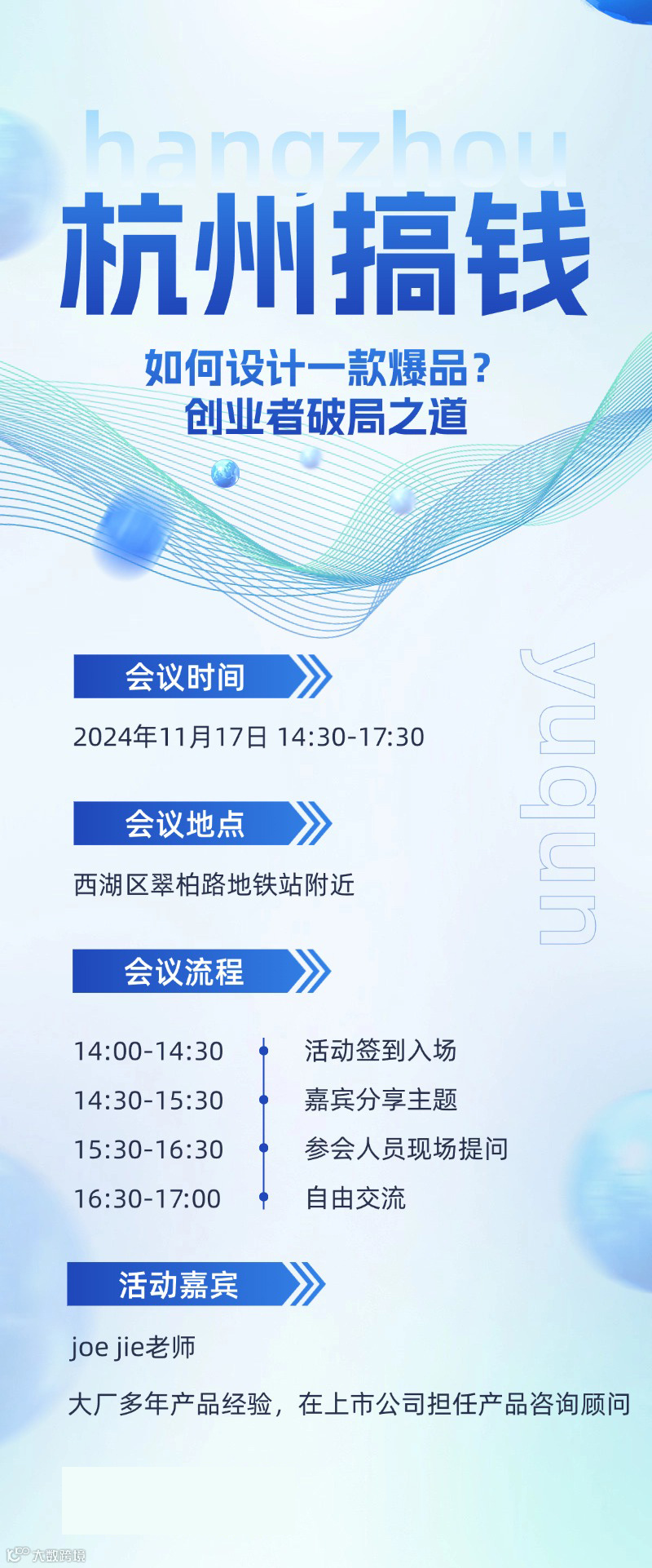 本次活动主题为:《如何设计一款爆品?——创业者破局之道》