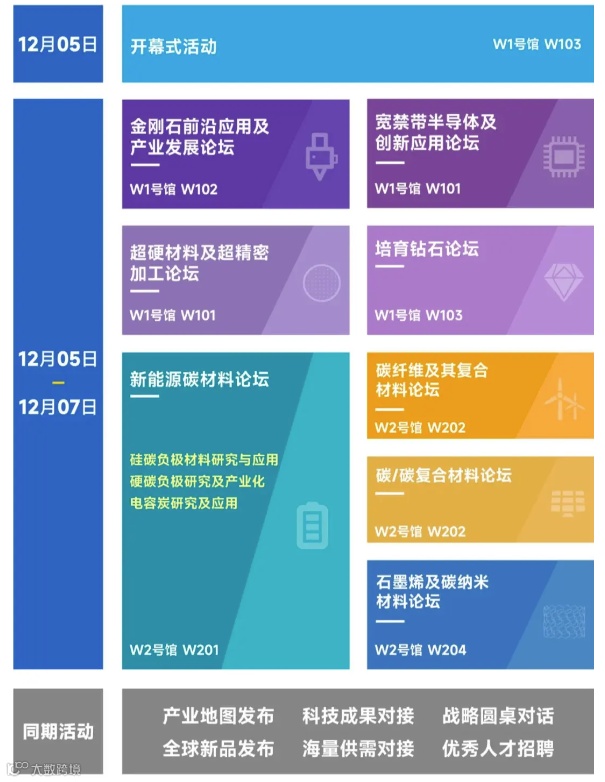 Carbontech 2024 | 第八届国际碳材料大会暨产业展览会将于12月5-7日在上海·新国际博览中心举办(W1、W2),涵盖金刚石、培育钻石、石墨烯、碳纤维及碳/碳复合材料、硅碳负极、碳纳米管、硬碳、电容炭等相关碳材料主题。同期举办产业地图发布、英才招聘、新品发布、圆桌对话、学术海报展示等10余项特色活动。