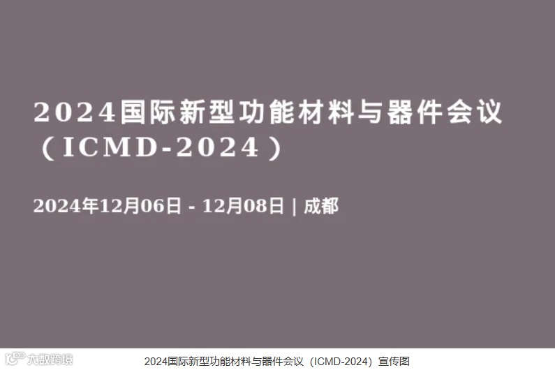 为了推动新型功能材料与器件研究领域的创新和发展,搭建国内外研发机构间的交流合作,“2024国际新型功能材料与器件会议(2024International Conference on New Functional Materials and Devices,ICMD-2024)”将于2024年12月6-8日在中国四川省成都市召开,本届大会将特邀国内外新型功能材料与器件领域的著名专家学者做精彩报告,深入探讨领域内研究新进展和新成果。