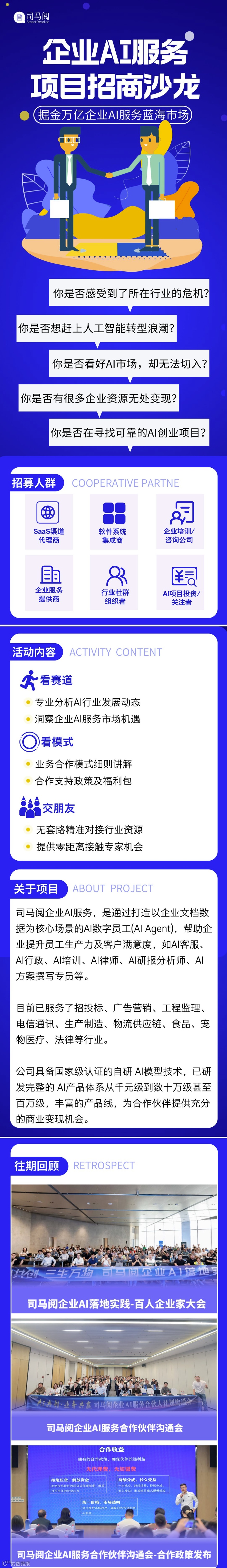 30+创业可入局的AI项目:司马阅企业AI服务合作伙伴交流会【AIGC人工智能项目招商】
