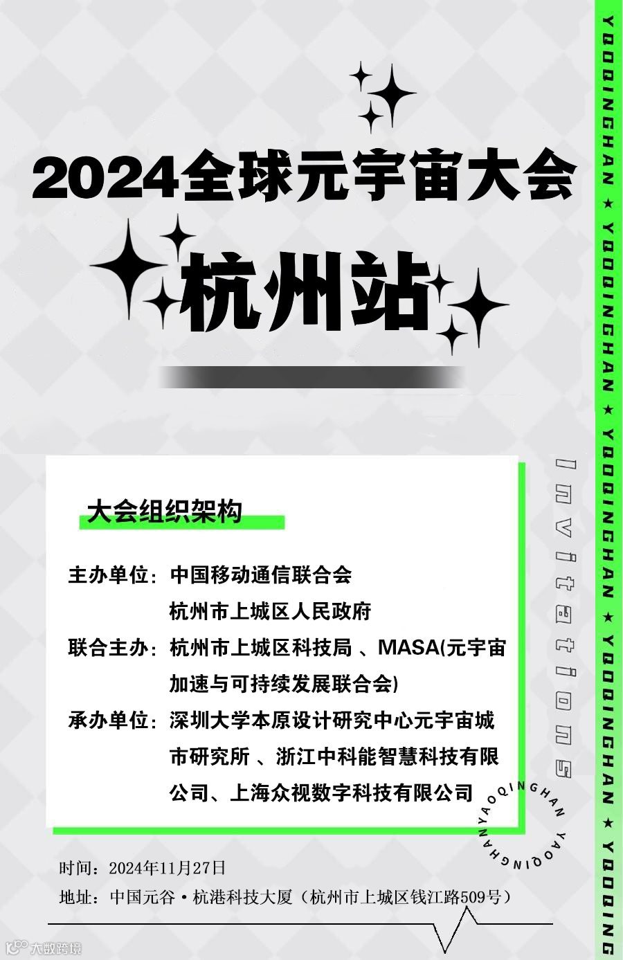 在此背景下,数智中国科技周·全球元宇宙大会杭州站,将于2024年11月27-28日在杭州隆重召开,聚焦人工智能+元宇宙的应用场景,以VR大空间为引擎,满足消费者对新型互动体验的需求,催生身临其境沉浸式应用与切实落地,推动文化消费与科技的深度融合,共绘AI元宇宙现实世界与虚拟世界深度融合的具体实践。