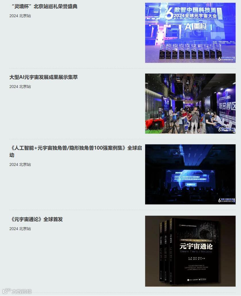 2024全球元宇宙大会灵境杯杭州站巡礼也即将展开,遴选出AI元宇宙数字化新质生产力创新示范标杆实践,聚焦最具新质生产力、最具领导力企等企业并颁发相关奖项;