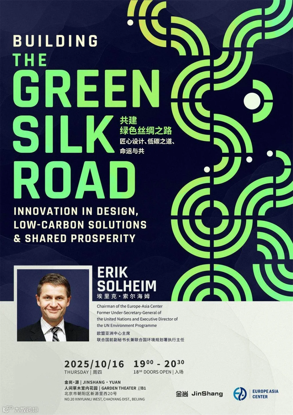 Join us for an insightful talk with Erik Solheim, Chairman of the Europe-Asia Center, former UN Under-Secretary-General and Executive Director of the UN Environment Programme. He will share his vision for a sustainable future through the Green Silk Road—focusing on innovative design, practical low-carbon solutions, and global cooperation that connects us all.