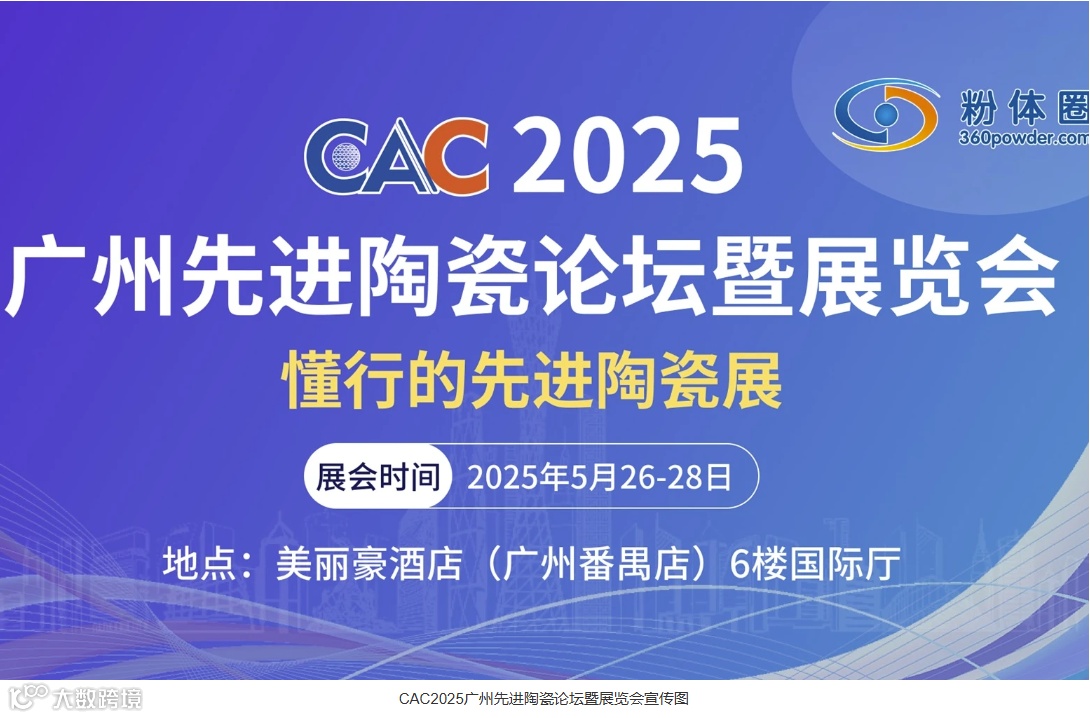 粉体圈在此诚邀您携新技术、新产品亮相“CAC2025 广州先进陶瓷论坛暨展览会”,了解先进陶瓷领域的最新需求,共同探讨产业未来发展方向,开拓新的市场机会,助力我国先进陶瓷行业的高质量发展。