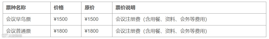 会议注册费(含用餐、资料、会务等费用):1800元/人;住宿统一安排,380元/晚,费用自理;5月10日之前报名并缴费1500元/人(优惠价)。