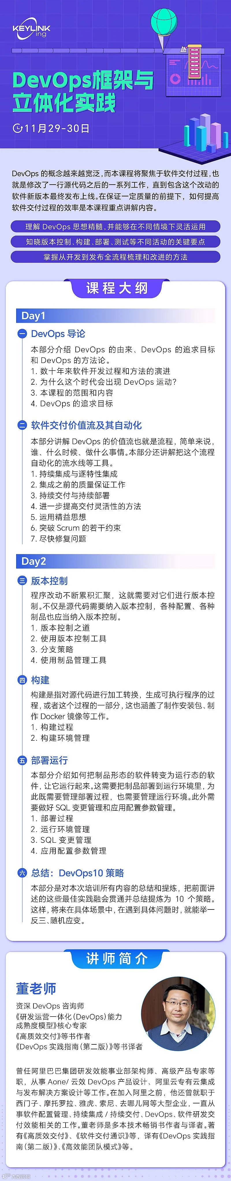 曾任阿里巴巴集团研发效能事业部架构师、高级产品专家等职,从事 Aone/ 云效 DevOps 产品设计、阿里云专有云集成与发布解决方案设计等工作。在加入阿里之前,他还曾就职于西门子、摩托罗拉、雅虎、索尼、去哪儿网等大型企业,一直从事软件配置管理、持续集成/持续交付、DevOps、软件研发交付效能相关的工作。董老师是多本技术畅销书作者与译者。著有《高质效交付》、《软件交付通识》等,译有《DevOps 实践指南(第二版)》《高效能团队模式》等。