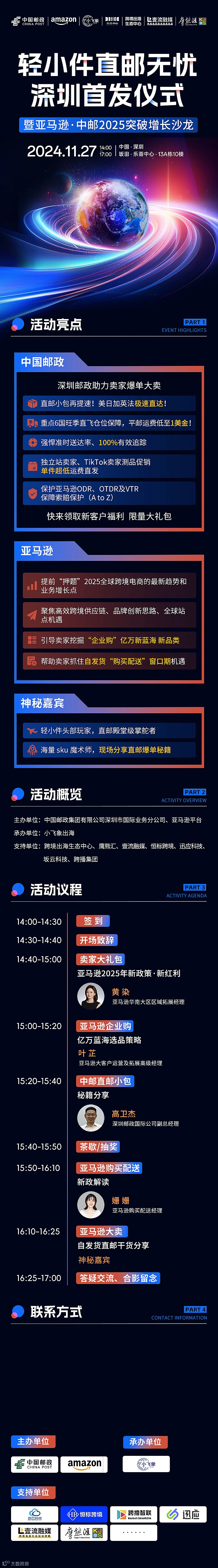 亚马逊 TK 独立站卖家快来薅羊毛---轻小件直邮无忧深圳首发仪式暨亚马逊●中邮2025突破增长沙龙