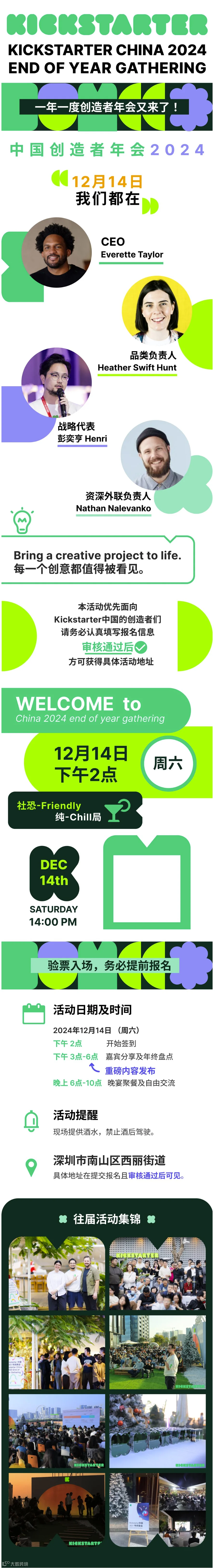 2024 Kickstarter 中国创造者年会 | 关注科技创新和品牌全球化的朋友们,Kickstarter喊你来聚会啦~
