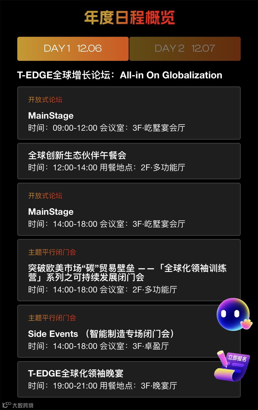 12月6日单日票 - 说明:12月6日 单日票权益 1、12月6日 T-EDGE 全球增长论坛「MainStage主会场」观众区席位*1 2、12月6日 T-EDGE「全球创新生态伙伴午餐会」专属闭门餐叙席位*1 3、12月6日T-EDGE「前沿互动区」单日体验票*1