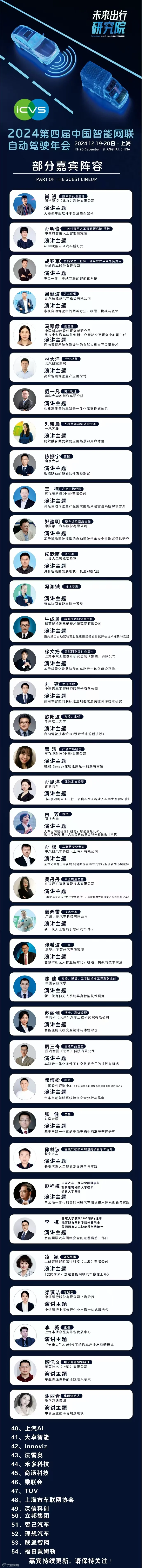 全球汽车正在以雷霆之势向电动化、智能化、网联化、共享化加速发展,汽车电 子技术创新引领着汽车产业技术升级与变革。为推动汽车与半导体跨界融合,促进汽 车芯片共性技术研发和突破,共享汽车产业新机遇,共创汽车产业链、供应链新生态, 共建汽车芯片供需对接平台,推动中国汽车产业高质量发展,上海市车联网协会、ICVS、未来出行研究院将于2024年12月19-20日在上海举办“2024第四届中国智能网联与自动驾驶年会“,同期举办“2024数据安全与智算存储技术峰会”。