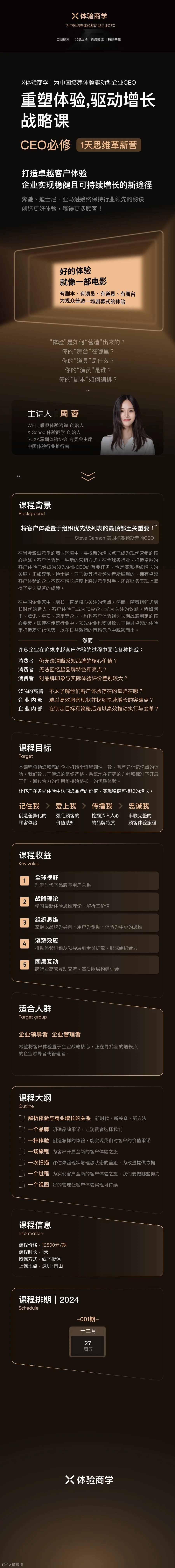 CEO必修课《重塑体验,驱动增长》1天课程,塑造全方位体验战略思维!