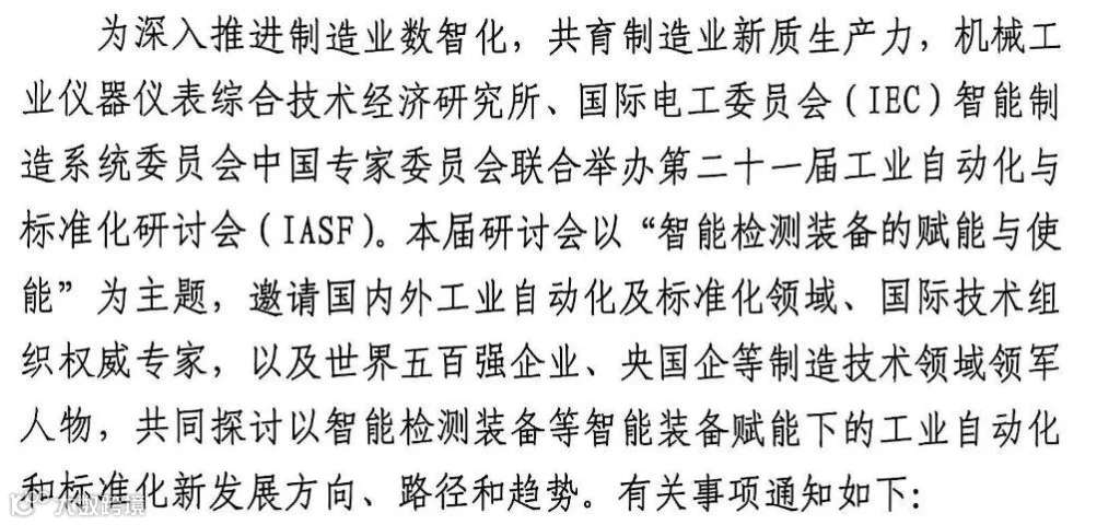 第二十一届“工业自动化与标准化”研讨会—— 智能检测装备的赋能与使能