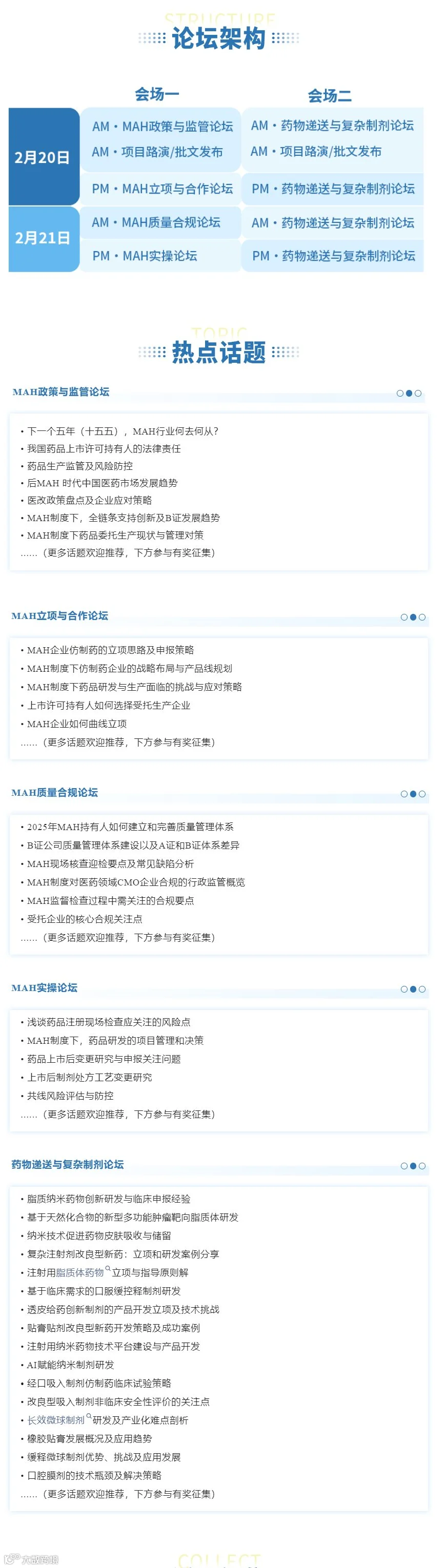 2025年,是“十四五”规划收官之年,亦是谱写“十五五”规划的前奏。MAH行业、药物递送技术与高端复杂制剂的发展必将迎来新一轮关键机遇期。“2025MAH&DDS制剂合作大会·杭州站”兹定于2025年2月20日-21日举办。作为2025开年首场制药盛会,大会将围绕“MAH政策与项目合作、药物递送与复杂制剂”两大主题,设立多个论坛,聚焦MAH政策趋势、批文项目合作、药物递送技术、复杂制剂立项与研发等前沿话题,汇聚药监专家与行业精英,共话技术革新,共谋产业发展。