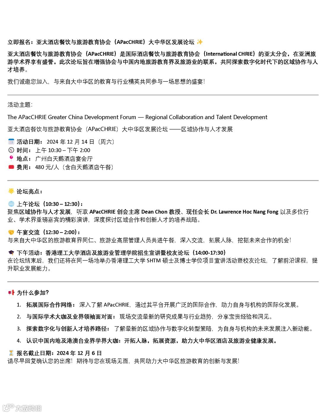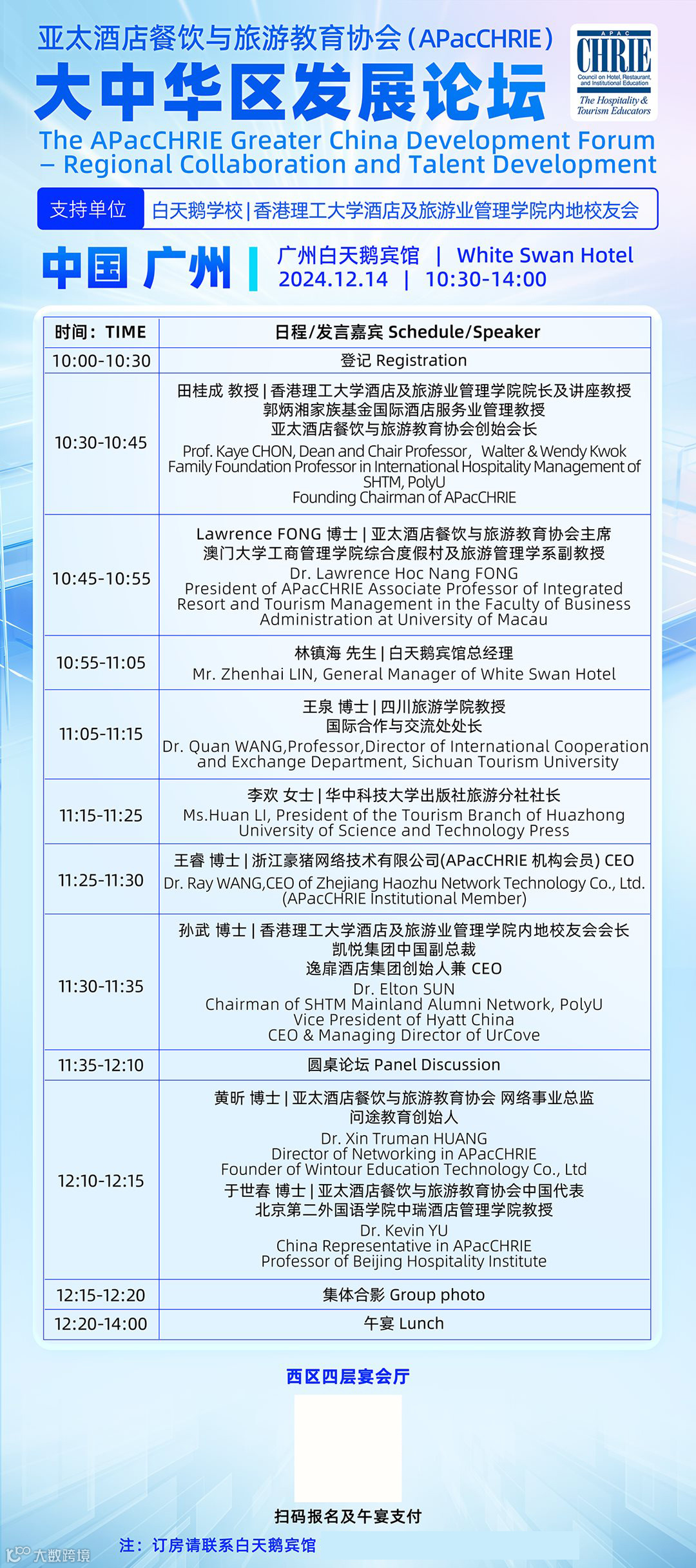 亚太酒店餐饮与旅游教育协会(APacCHRIE)大中华区发展论坛