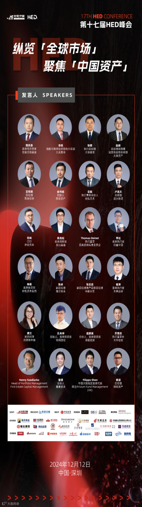 HED 峰会参与机构包括银行金融市场部、资产管理部、私人银行部、银行理财子公司、保险资产管理公司、信托、公募基金、券商资管公司、私募基金公司、上市公司等多产业链多生态专业人员共同塑造中国金融体系。同时 HED 峰会注重全球资产配置及中国投资机遇,促进资金全球化配置及财富多元化策略,探索多变市场环境中投资机遇与投资策略,同时伴随着 AI,资管科技和财富管理科技的不断发展很深化,更多的智慧投资机会和智能投资技术也在快速迭代,为市场带来新的视界和新的可能性。ESG 和碳中和投资机会也将被纳入本次论坛为活动内容的整性和全新的投资赛道提供更多可能。