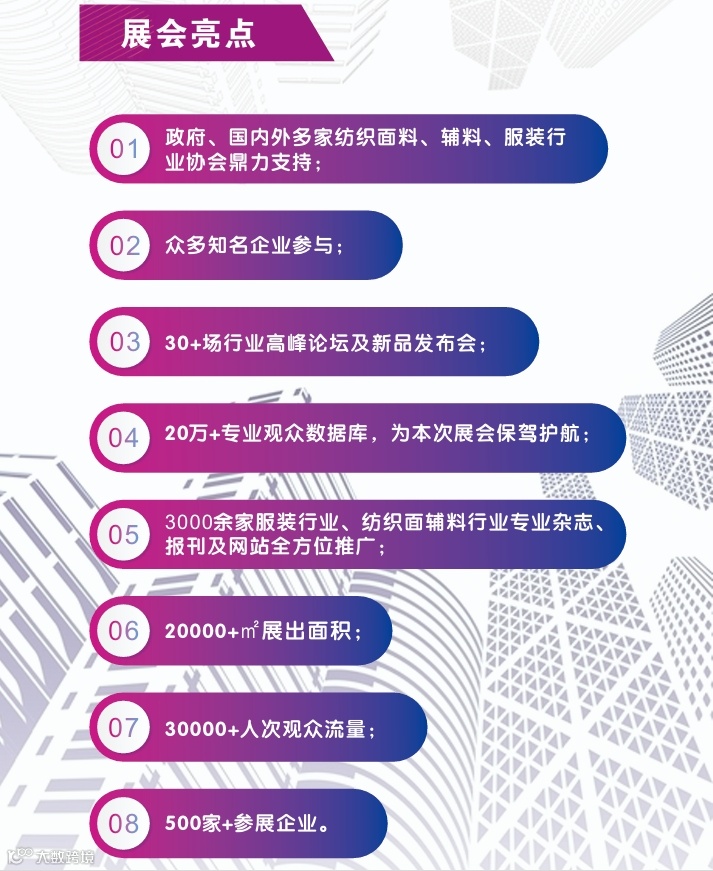 展会期间还举办了服装、纺织行业专业研讨会10余场次,本次会议共吸引 18000多名来自服装、纺织行业领域的高层领导、总工、专家参与。