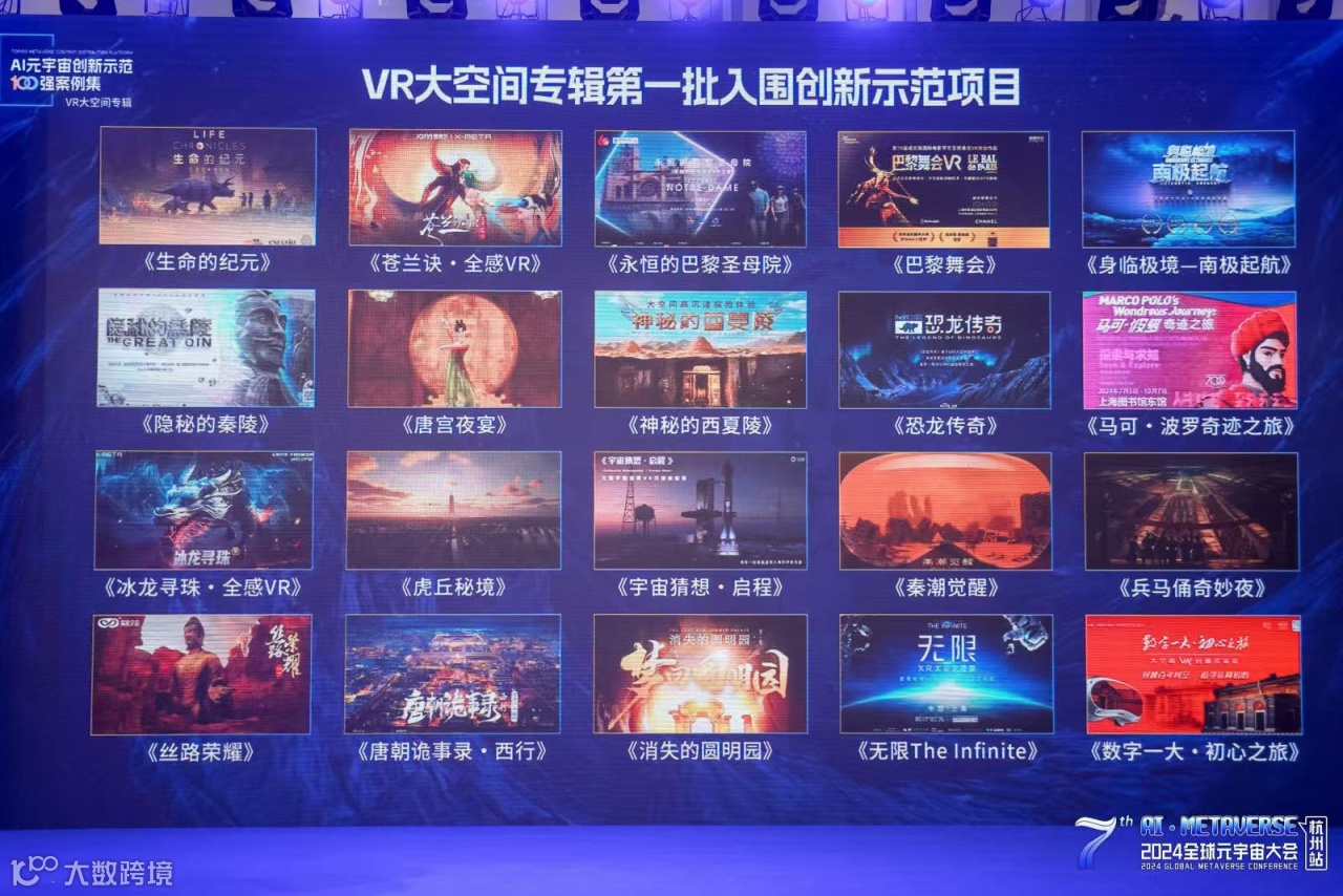 《AI元宇宙创新示范100强案例集》VR大空间专辑先后走进了《苍兰诀·全感VR》、《胡夫地平线》、《唐宫夜宴》XR、《无限The Infinite》、《巴黎舞会Le Bal de Paris 》、《数字一大·初心之旅》、《永恒的巴黎圣母院》、《梦回圆明园》、《马可·波罗奇迹之旅》、《虎丘秘境》、《恐龙传奇》《身临极境-南极起航》、《一梦入大唐》和《隐秘的秦陵》等二十几个顶级VR大空间标杆案例,同时数智中国科技周·全球元宇宙大会上海站将邀请VR大空间标杆案例合作对接会。