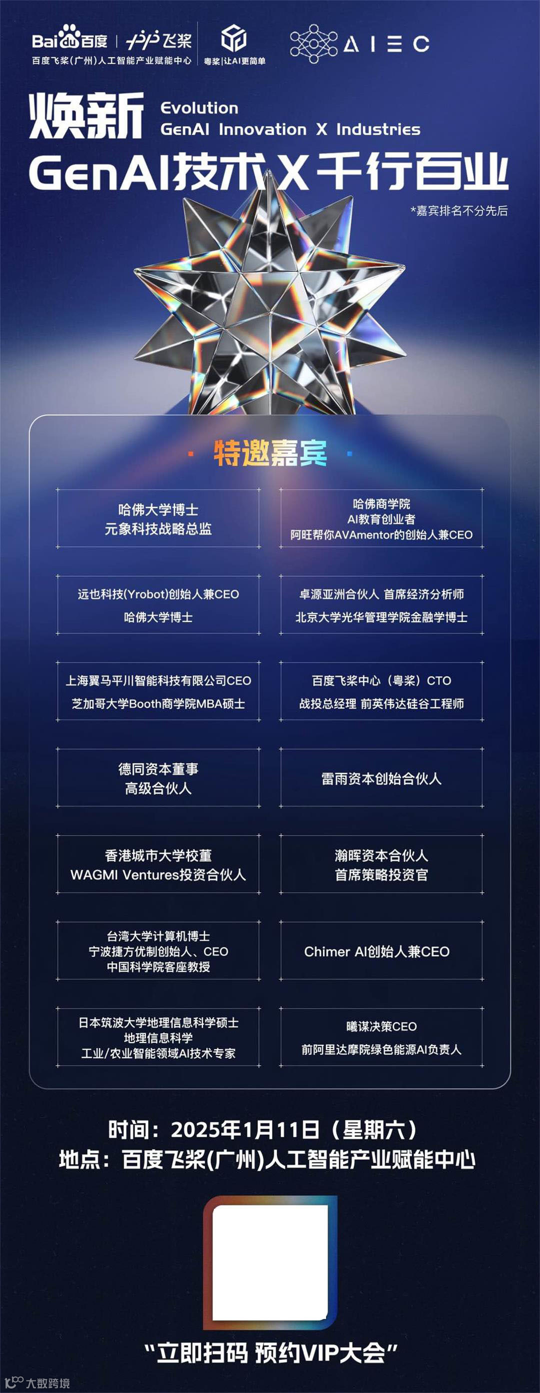 活动将探讨GenAI 如何重塑千行百业,革新制造业、医疗、金融业等行业领域。并以主题演讲、圆桌讨论、案例分析等形式,为企业与开发者搭交流合作平台,共探 GenAI 前沿突破与趋势,探讨商业机遇与社会价值提升路径,开启科技赋能产业变革之旅。