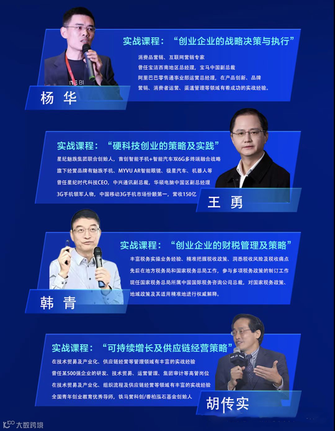 聚焦硬科技企业可持续增长的目标,邀请有创业经历的原世界500强企业高管,以丰富的实战经验,分享如何制定并践行硬科技创业的破冰及创新驱动的发展战略,硬科技创业的策略及实践以及可持续增长及供应链经营策略。同时邀请国内顶尖的税务专家,分享创业企业的财税管理及策略。通过深入的学习与交流,您将进一步明确如何形成一套适合自身企业的实践方案,推动企业实现跨越式发展。