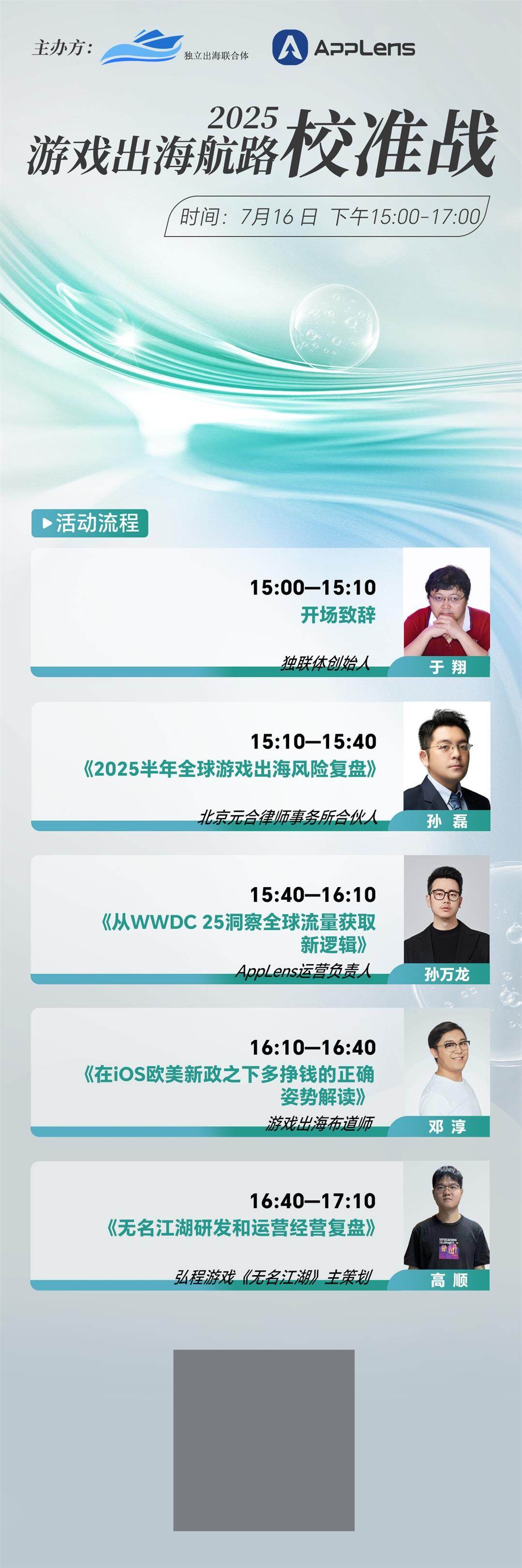 2024年,中国游戏出海收入重回增长且再创新高,但这更多来源于大厂的发力与头部产品的爆红,广大参与游戏出海与全球化竞争的公司仍旧面临着巨大的挑战和困境。除了产品质量层面的竞争之外,出海合规问题每每困扰着出海的中国游戏产品;苹果这样的生态巨头围绕“第三方支付”所做的任何一点改变时时牵动人心;在这样的态势之下,如何在苹果iOS生态内更有效率地进行深耕也成为了重中之重。有鉴于此,独立出海联合体将携手Applens,在7月16日下午15:00-17:00联合举办“游戏出海航路校准战”线上主题沙龙,邀请游戏专业的合规律师以及深耕iOS生态的业内精英共聚一堂,为广大开发者答疑解惑,共同在当前的逆风局之中开辟新的“出海航路”。