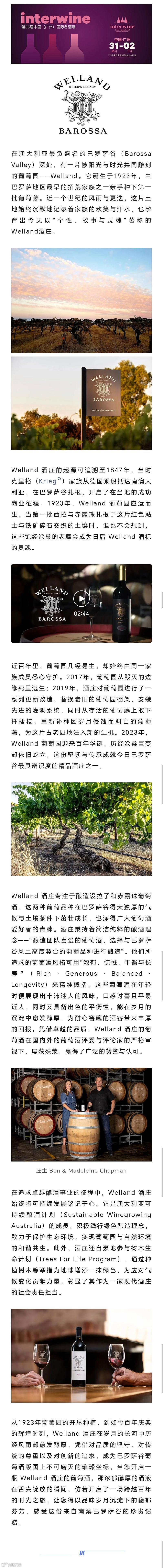 展商B2B对接报名丨澳洲巴罗萨百年老藤的当代传奇—Welland Wines