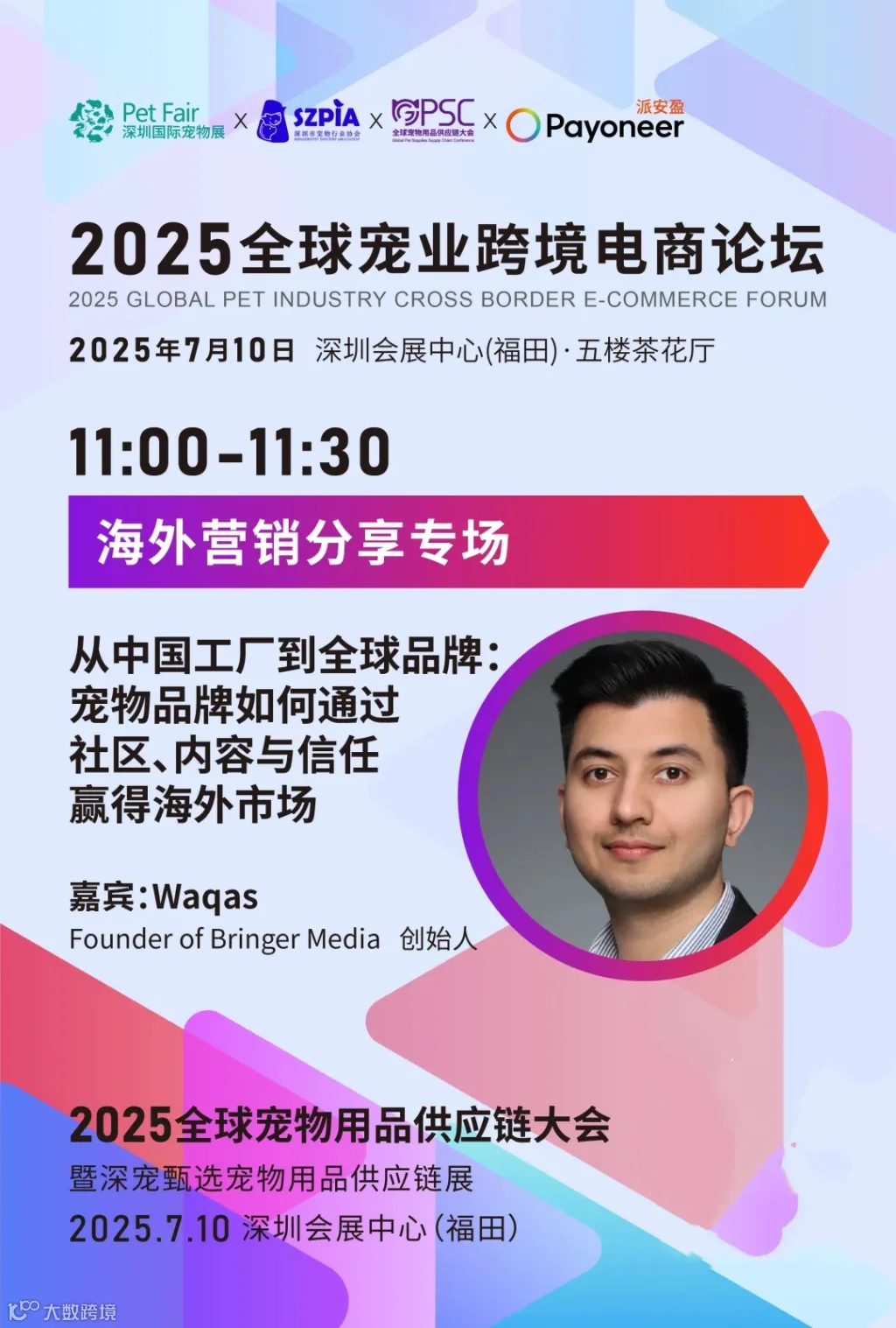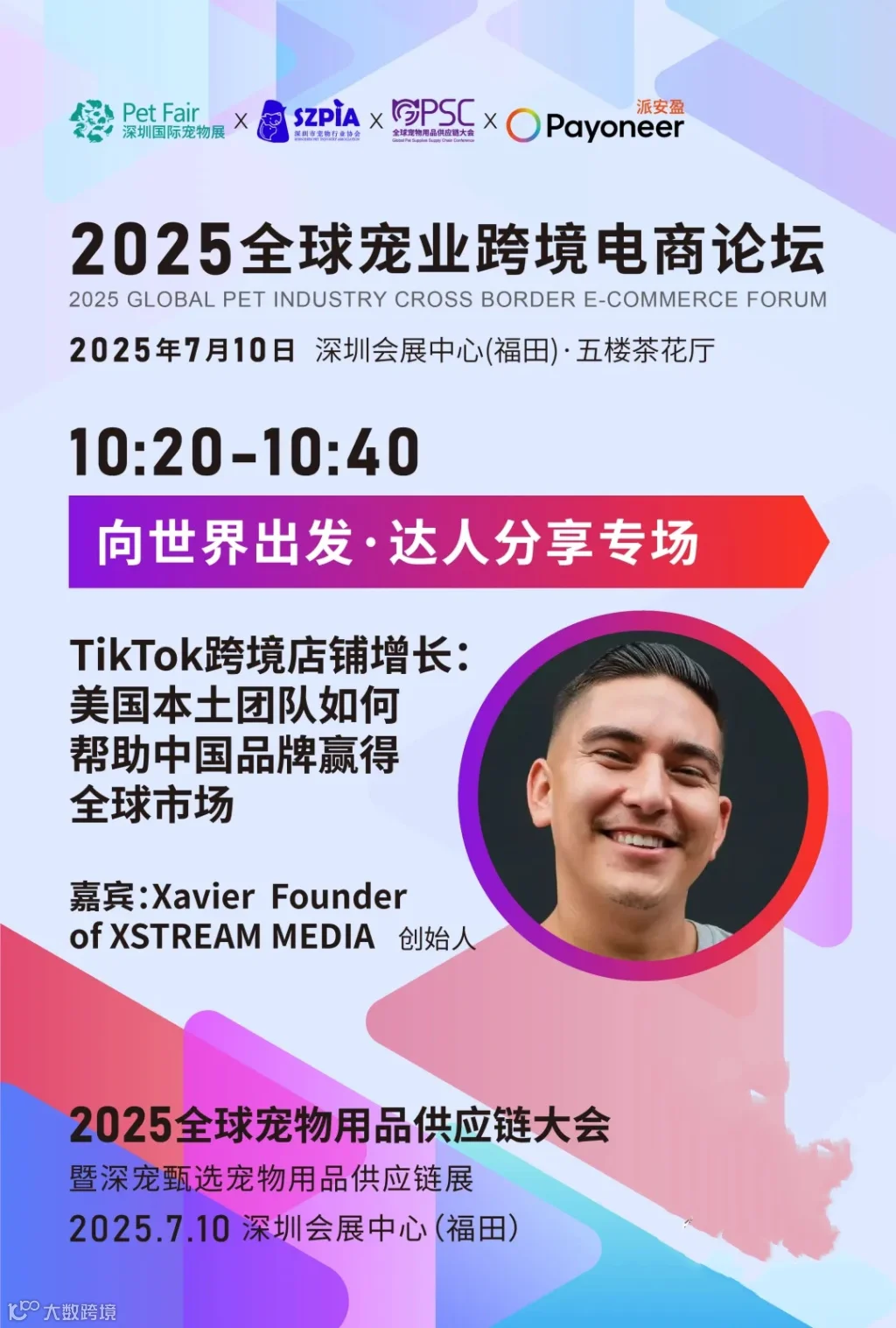 2025全球宠业跨境电商论坛·海外营销专场&红人KOL选品会,特邀XSTREAM MEDIA创始人Xavier、Deelilah,Bringer Media创始人Waqas,带来“TikTok跨境店铺增长:美国本土团队如何帮助中国品牌赢得全球市场”等主题分享,深度拆解海外本土团队运营逻辑与内容创作密码,用一线案例解锁流量破局、品牌拓展与市场渗透的核心路径。同期举办:海外红人KOL选品会,整合海外红人KOL优质资源,锁定海外宠主热点需求,助力中国宠物用品借助红人KOL通往全球市场。
