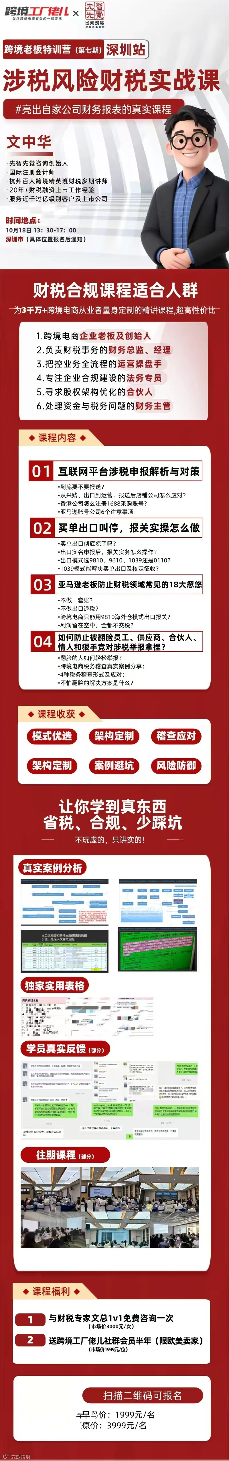 跨境老板特训营(第七期)——涉税风险财税实战课 深圳站