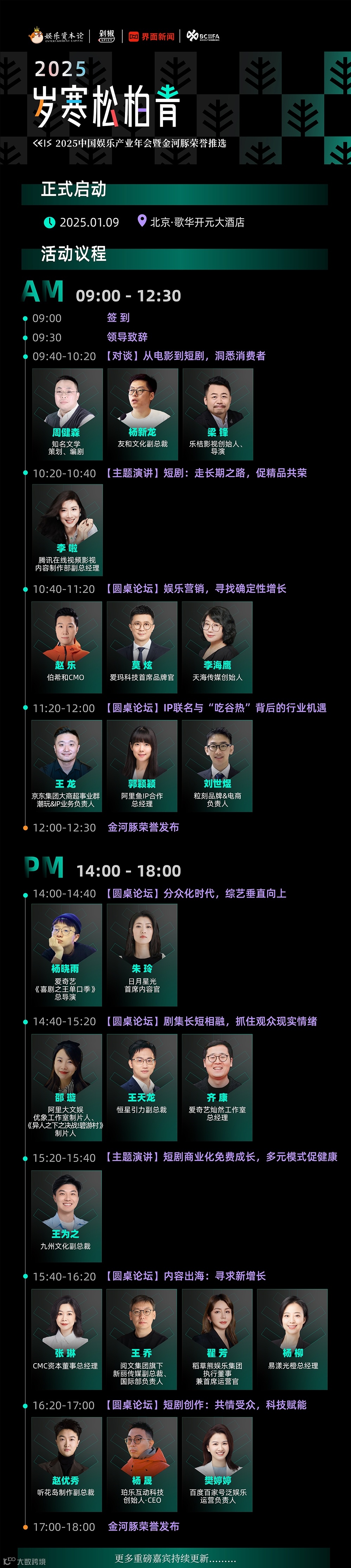 活动将涵盖CEIS2025行业论坛、金河豚荣誉推选、《岁寒松柏青》年度刊物三大板块,涉及电影、长剧、短剧、综艺、营销、IP联名、艺人经纪、音乐演艺8大领域。
