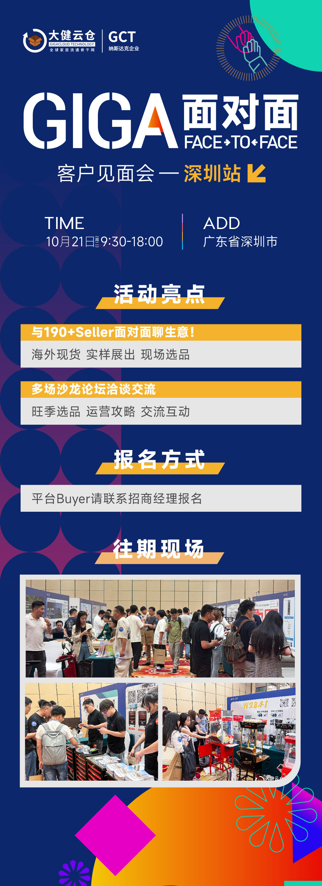 > 我们邀请您,参加**大健云仓(GCT)深圳线下深度见面会**。作为登陆纳斯达克的大件B2B出海平台,我们首创“供应链前置”模式,超10万SKU已备货海外仓,助您实现 **“售出下单、零库存风险”** 的轻资产运营。