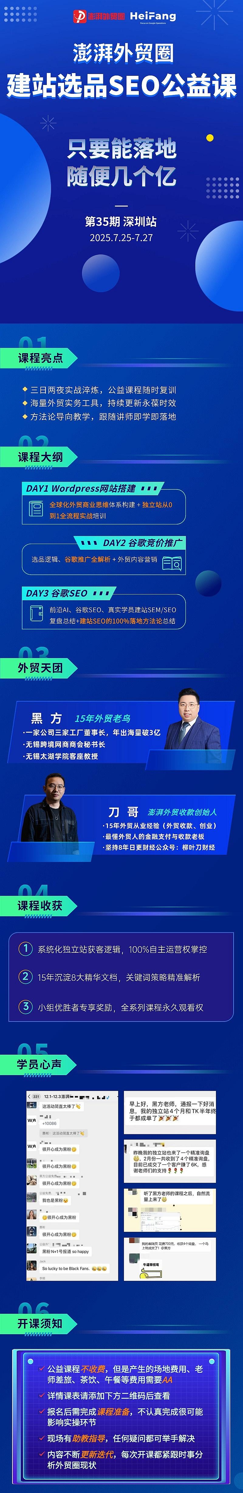 澎湃外贸圈公益课第35期(黑方外贸选品建站SEO课 深圳站)