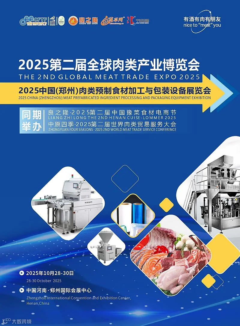 作,“良之隆·中国食材电商节”与“中原四季水产物流港”强强联合,于2025年10月28日至30日在郑州举办“2025第二届全球肉类产业博览会”,同期举办“良之隆·2025第二届中国豫菜食材电商节”、“2025中国肉类卤菜节”及“2025中国(郑州)肉类食材及预制菜先进加工技术及装备展览会”等一系列专业展览会,并举办“中原四季·2025第二届世界肉类贸易服务大会”、“2025中国肉类食材及预制菜机械装备科技创新大会”及“2025国际肉类贸易高端酒会”等一系列高端活动。