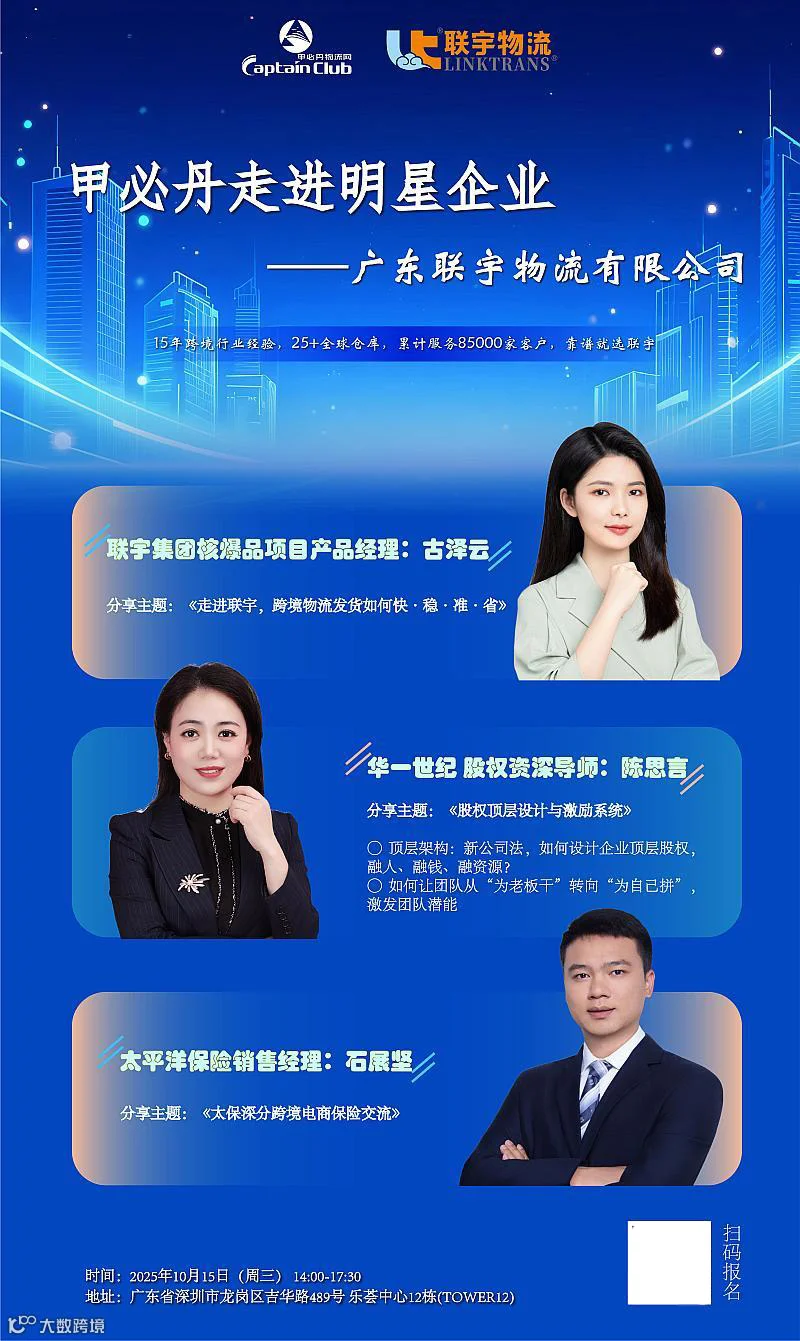 物流行业风云变幻,如何在新格局中找准方向、实现突破?10月15日,一场聚焦物流行业前沿话题的总裁分享会即将拉开帷幕!甲必丹物流网携手众多会员单位,走进会员企业广东联宇物流有限公司,为大家带来一场干货满满的行业盛宴!