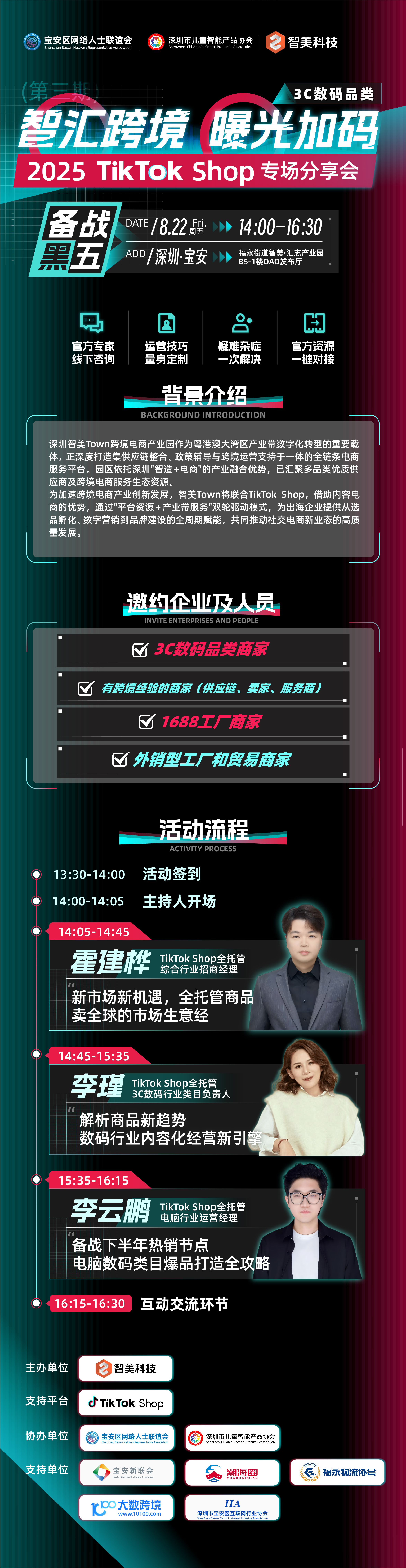 【跨境电商】智汇跨境 曝光加码 TikTok Shop 手机数码&电脑&汽摩配专场分享会