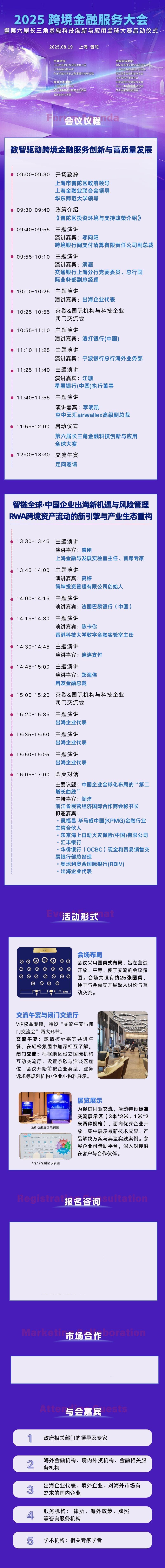 “2025跨境金融大会”暨第六届长三角金融科技创新与应用全球大赛启动仪式将于2025年8月19日在上海跨国采购会展中心举行。本次高峰论坛以“智链全球·跨境金融服务企业扬帆出海”为核心主题,聚焦跨境金融服务、中国优秀企业“走出去”及稳定币资产数字化等热门议题,邀请国内外权威银行机构、出海先锋企业、头部中介服务机构,分享实践经验及发展路径,推动跨境金融与全球资源的深度融合,为企业“出海”提供坚实支撑。
