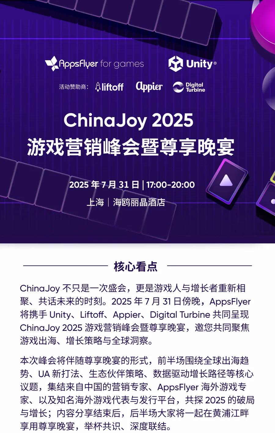 ChinaJoy 2025游戏营销峰会暨尊享晚宴