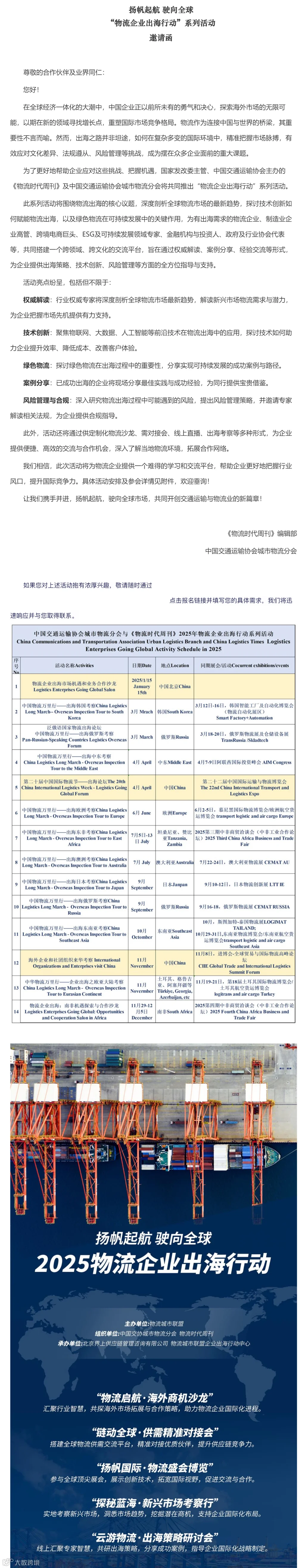 扬帆启航 驶向全球:2025物流企业出海行动系列活动