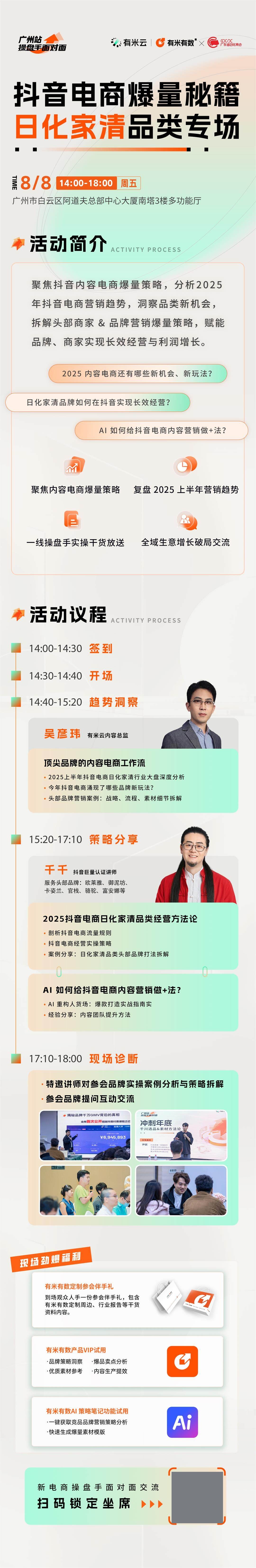 操盘手面对面·广州站|抖音电商爆量秘籍【日化家清品类专场】