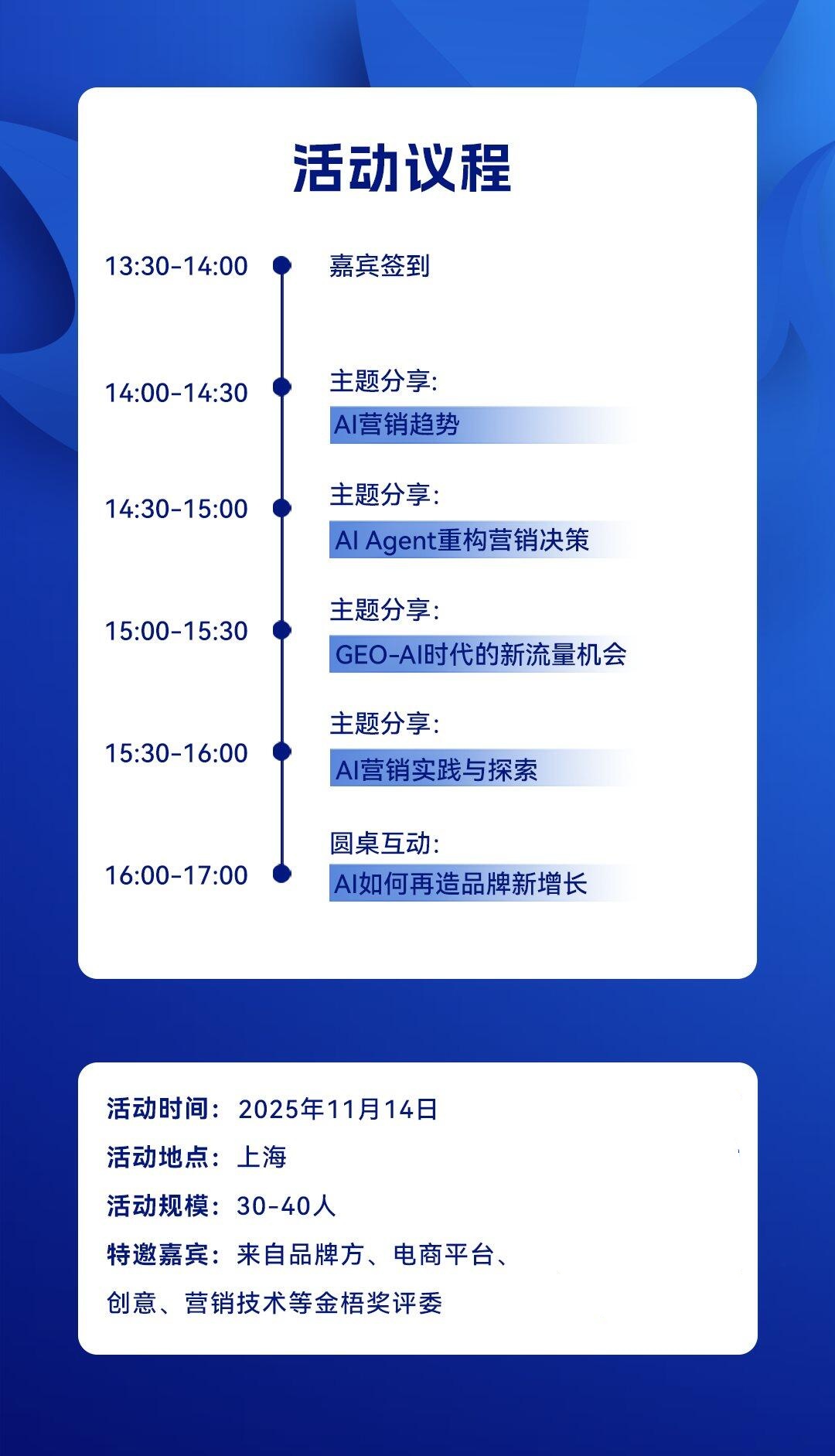 这是一场为决策者量身定制的实战研讨会。我们将与顶尖品牌CMO一同,从战略到执行,为您厘清思路,找到属于自己品牌的AI增长引擎,实现真正意义上的破局增长。