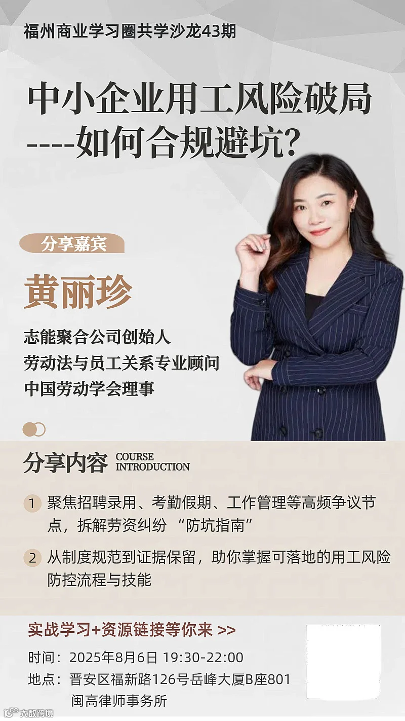 【共学沙龙】第43期:中小企业用工风险破局-如何合规避坑?