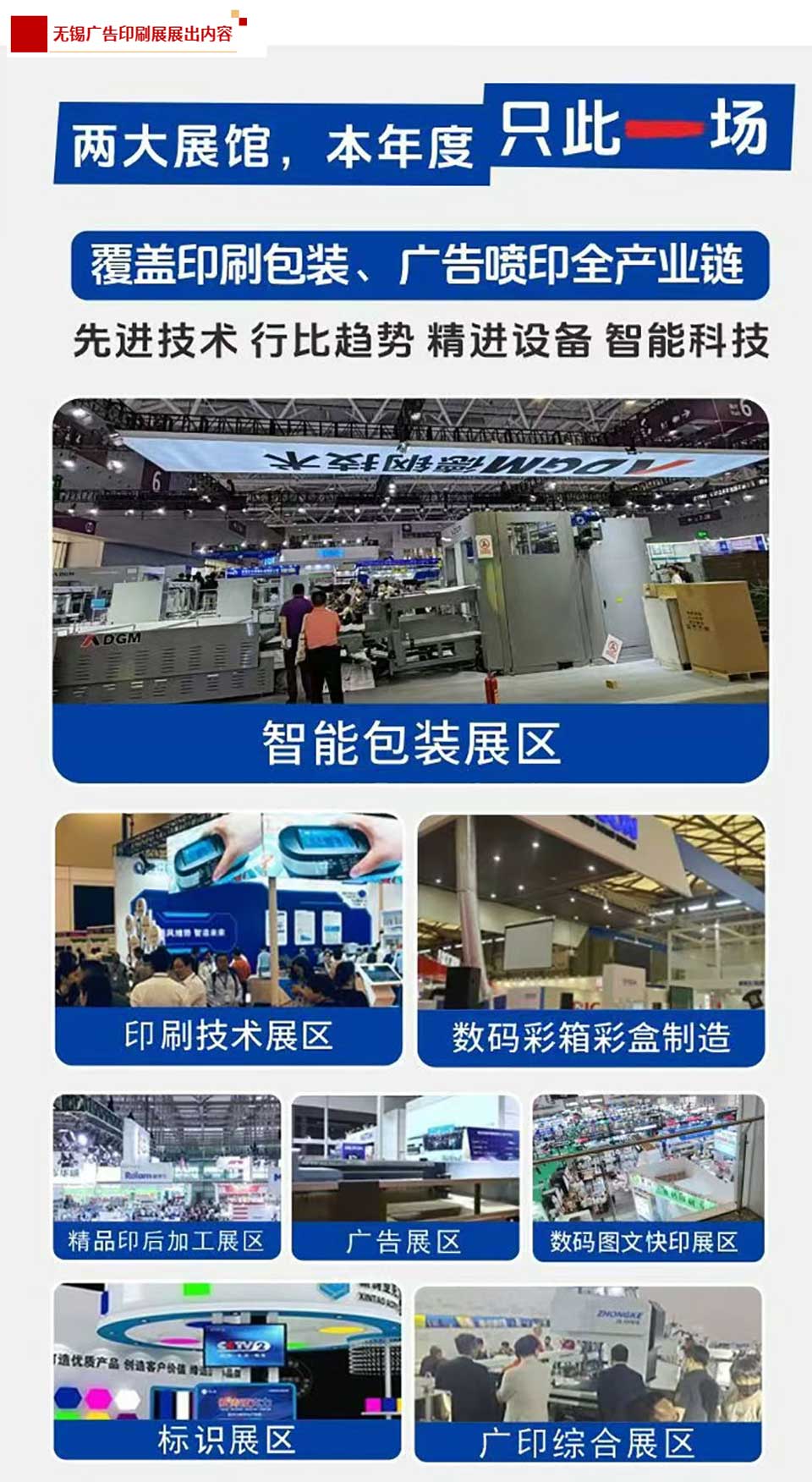 2025无锡印刷包装纸箱暨广告工业展定档11月8-10日在无锡太湖国际博览中心B1、B3馆举办,这不仅是一场行业盛会,更是一次推动产业迈向新高度的创新之旅。展会汇聚超过400家优质企业,涵盖印刷包装、纸箱设备、广告制造及材料供应链众多领域,行业专家与领先品牌共聚一堂。携手打造华东地区最具影响力的专业展会,为您提供高层次、高效率的交流合作平台。