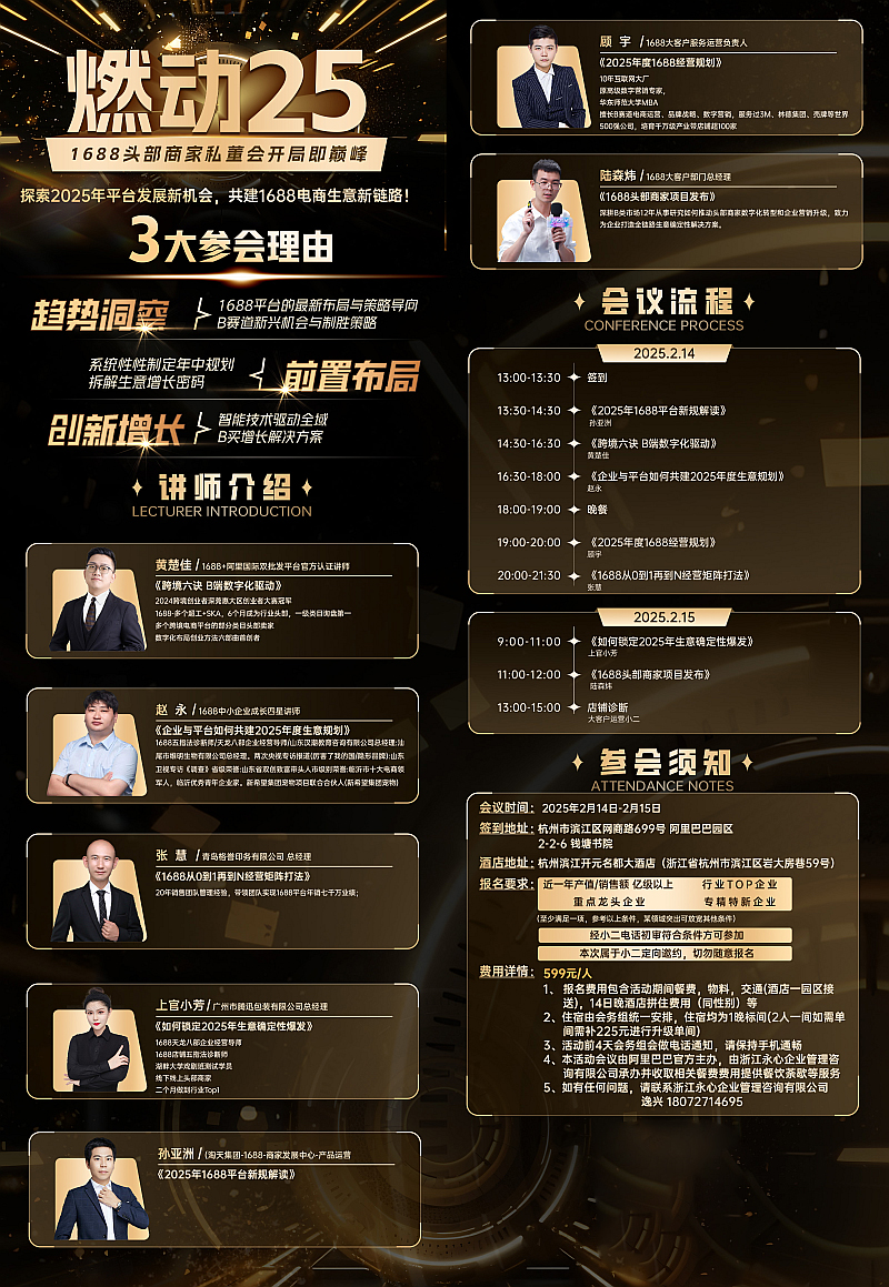 燃动2025——1688头部商家私董会开局即巅峰 (含住宿)