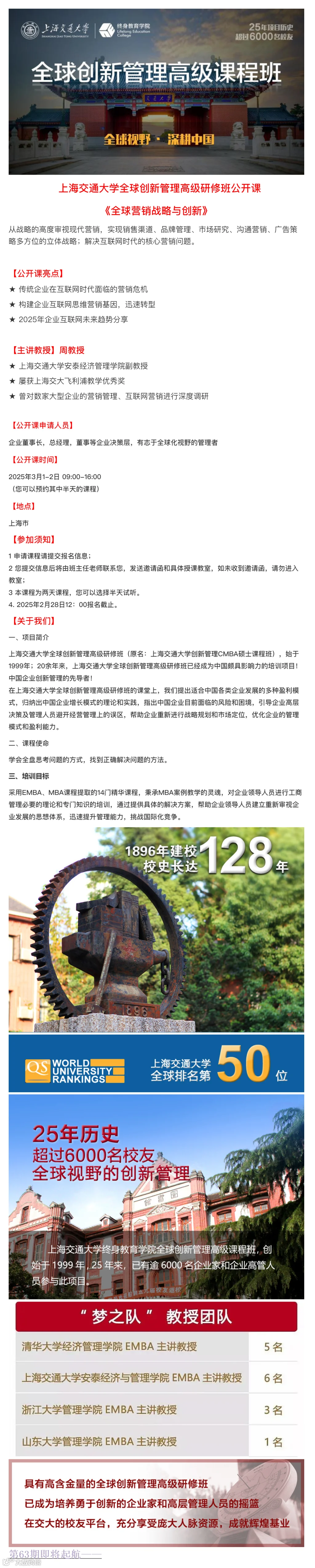3月1-2日上海交通大学全球创新管理高级研修班公开课《全球营销战略与创新》